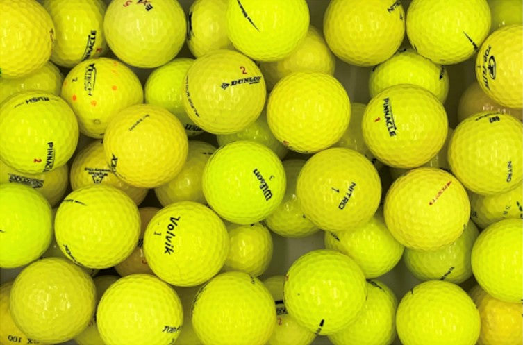 Die gelben Golfbälle im Mix sind gut sichtbar und somit leicht wieder zu finden. Der Gelb Mix beinhaltet Golfbälle / Lakeballs der unterschiedlichsten Golfball Hersteller in der Farbe gelb. Enthalten sind verschiedenste Golfball-Marken und -Modell, inklusive Markenbälle von Titleist, Callaway, Srixon , Taylor Made, oder Wilson Staff und weitere Golfball Marken.